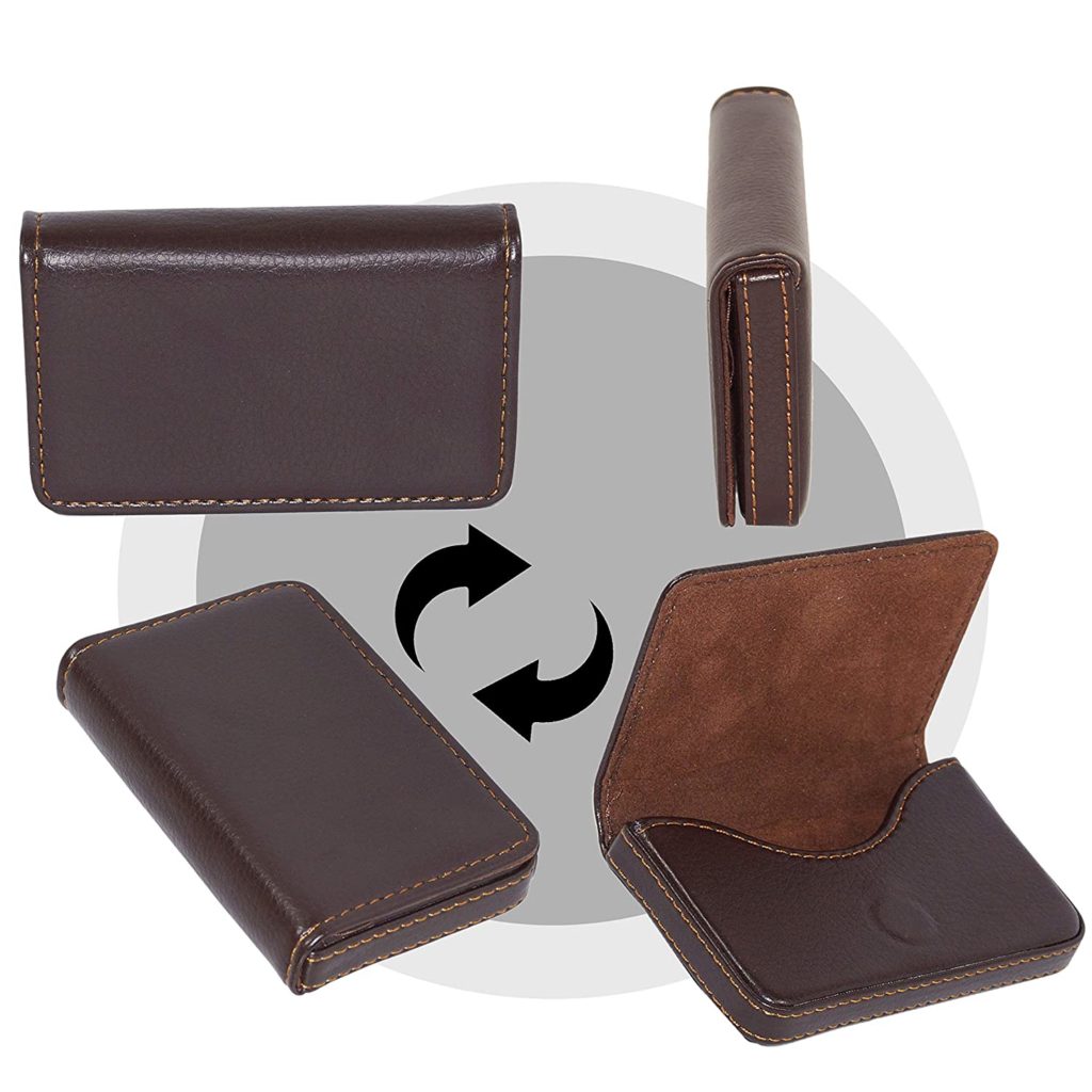 NISUN 3 in 1 Combo Leather Pocket Sized Business Debit Credit Card Holder Wallet Case with Magnetic Shut - Brown